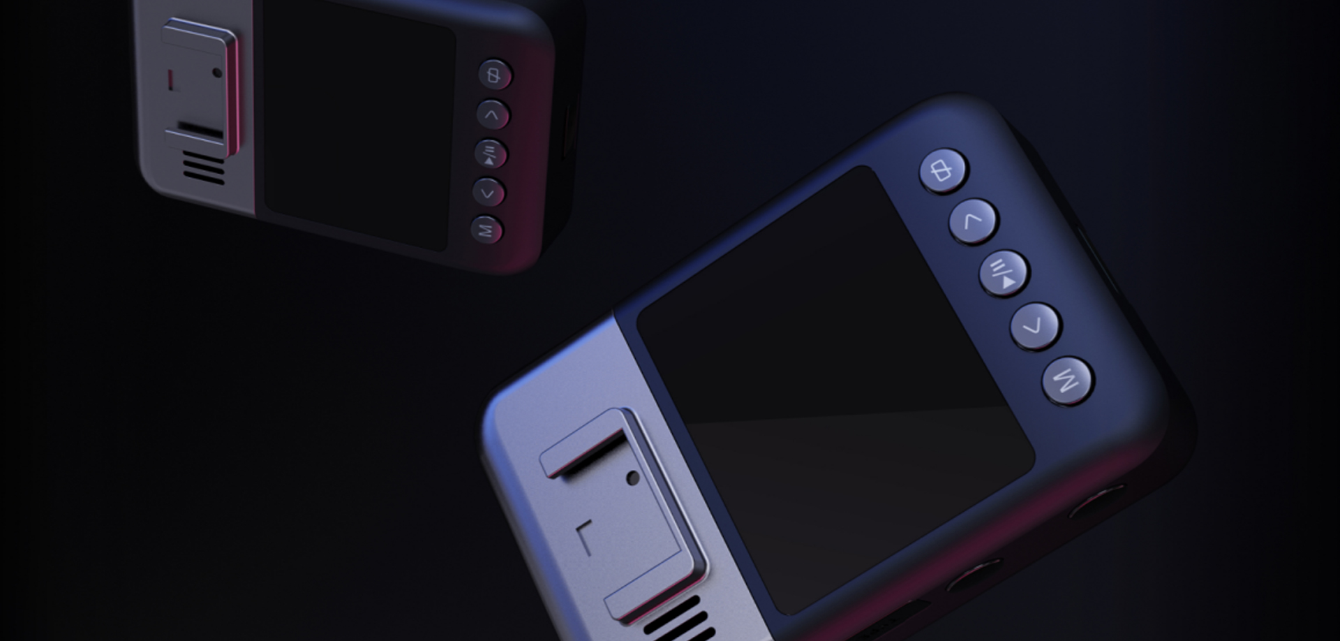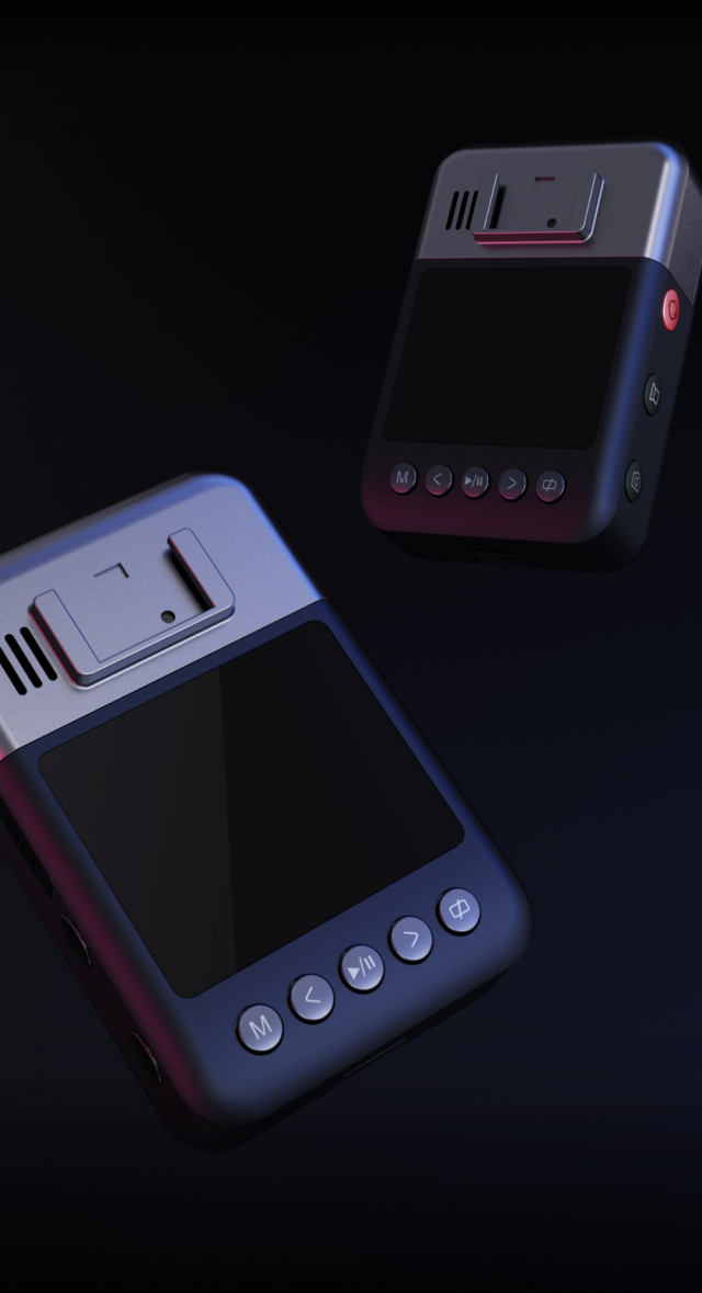 加利弗设计F7执法记录仪外观上采用色块拼接的撞色设计方式,摄像头的三分之一的部分为真空电镀银色,三分之二的下部分为亚光黑偏蓝色,不刻意规整的分割方式,在形式与意义之间创造出双重的美学内涵,两种不一样的色彩呈现,带来不一样的视觉体验。