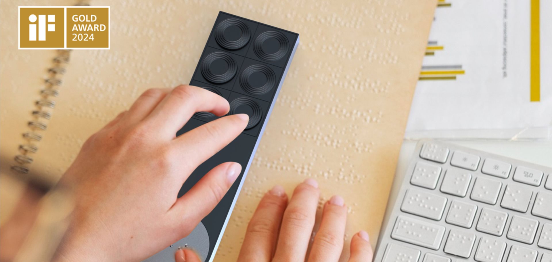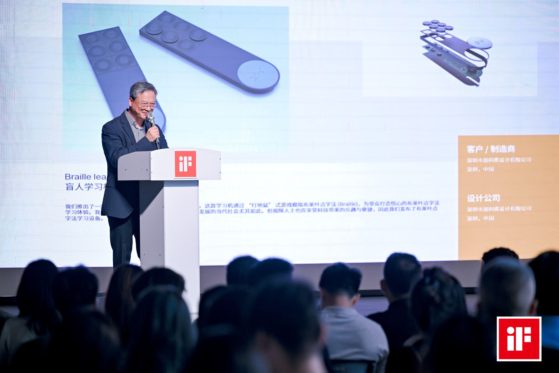 刘亮特别提到今年荣获德国iF设计金奖的盲文学习机的设计初衷, “带着团队发现需要做更多的关爱产品,特别是视障群体在生活中面临着许多不便,从被占用的盲道到缺乏语音提示的红绿灯,再到市场上缺乏适合他们的电子娱乐设备。这些痛点激发了我们为这个群体设计一款盲文学习机的想法。”这款产品以其独特的设计理念和深刻的人文关怀,解决了视障人士学习盲文的难题,不仅极大地提高了学习效率,更让学习过程充满乐趣。本次获得2024德国iF设计奖金奖,不仅是对加利弗设计实力的认可,更是中国设计在国际舞台上的一次重要展示。