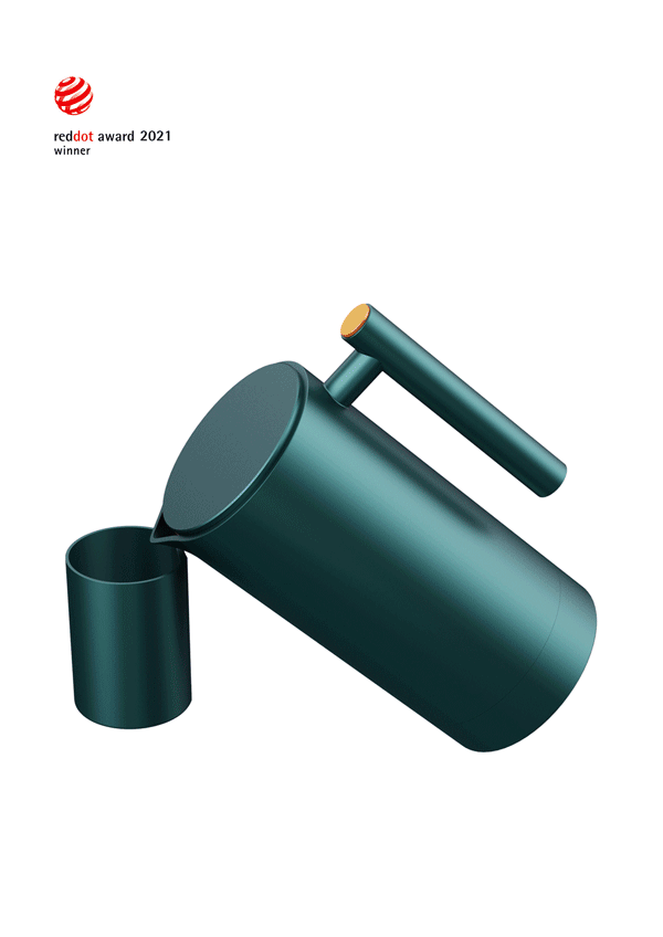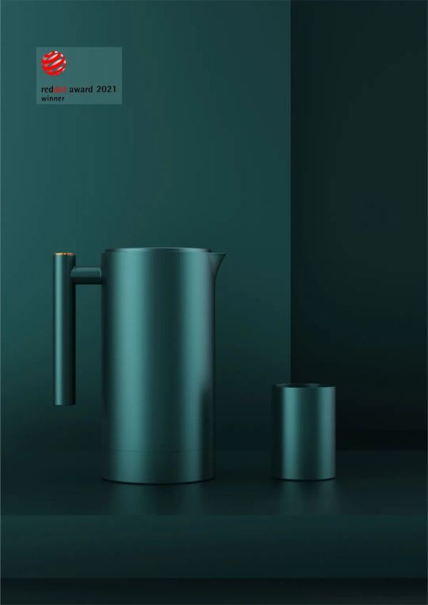 极简的外形设计,采用圆形为基本元素,整体元素统一,简约高端。由于主要定位是盲人使用,外观上没有过多的外形修饰,简约为主,更加注重人机性。壶盖开启按键设置在把手上方,很容易就能触摸到,即使是盲人使用操作,也非常便捷。同时按键采用金属电镀工艺,其触感不同于塑胶材质,摸起来有冰凉的感觉,方便盲人触摸识别,同时点缀整体外观,提升了产品的质感。