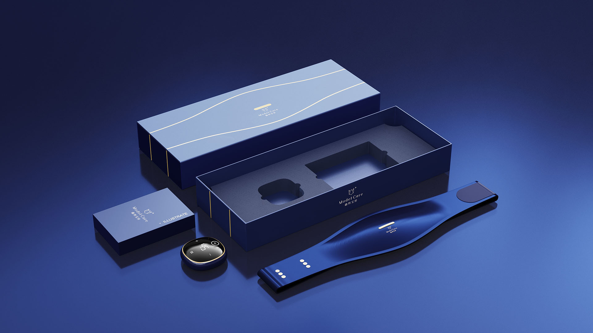 环腹式曲线设计,将曲线所具有的特点巧妙地运用在设计中,当腰带贴合于腰间时人与产品和谐自然。