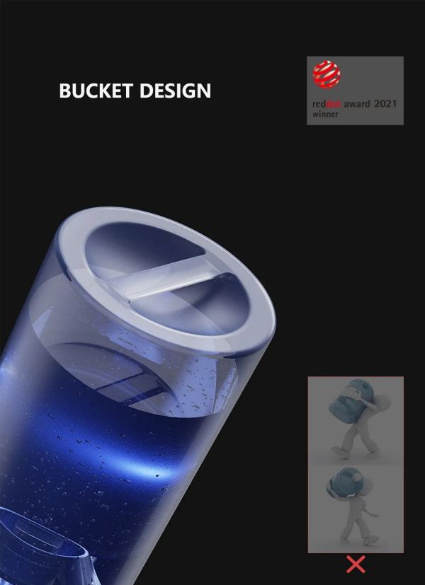 在很多国家和地区还在用桶装饮用水,此款饮水机水桶设计从生活出发,水桶通过加入了把手,解决了水桶的搬运问题,也解决了难放在饮水机上面的问题,并且出水端通过整平,使水桶可以叠加摆放,减少了平时水桶摆放空间浪费。