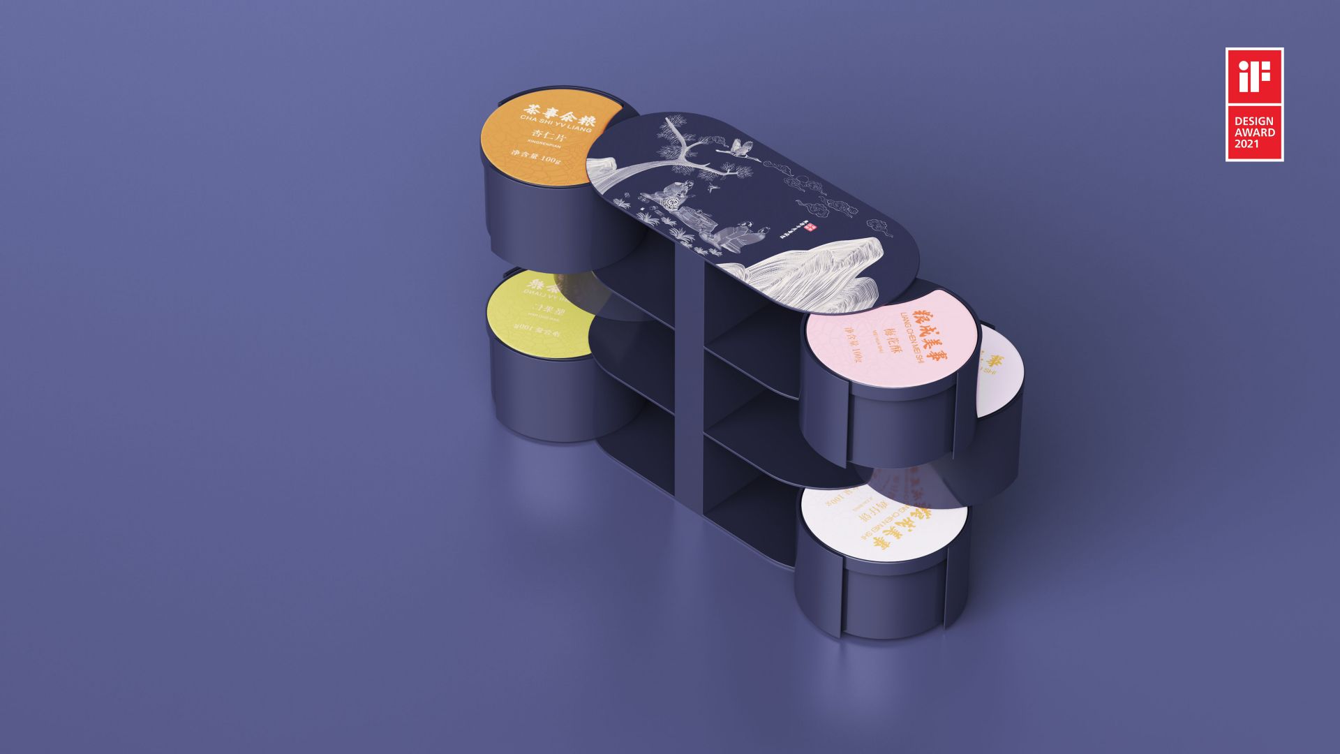 这套取名"茶事余粮"的高端茶点包装,在包装设计结构上采用分体式和一体式设计,在使用呈现上既可以是一套高级的茶点托盘,也可以单独取出小包装分享茶点,这款包装寓意喝茶谈事吃余粮。整体视觉上重点描绘中国远古文化玄微真人鬼谷子在清溪云梦山谷中喝茶论道的典故通过现代插画形式描绘在了包装上,传统文化的灵魂由此注入这款包装,这使得这款包装在内涵上得以提升,也让买这款茶点包装的消费者拥有了品读寓意的想象空间。并且内置的贴心健康配置表,更加关怀消费者,对于茶和茶点如何搭配的贴心提示这也让消费者有了更美好的消费体验感受,为品牌价值提供了载体。